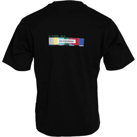 Dolce & Gabbana Black Printed Pocket Cotton Crewneck T-shirt