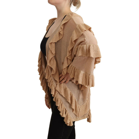 Aniye By Beige Ruffle Long Sleeves Open Front Cardigan Sweater