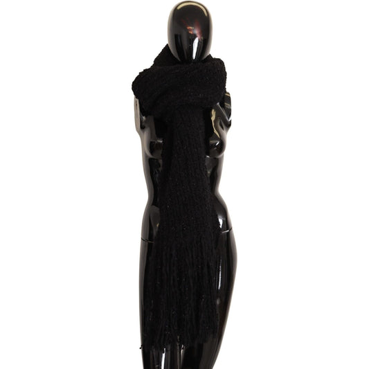 Dolce & Gabbana Black Virgin Wool Knitted Wrap Shawl Scarf