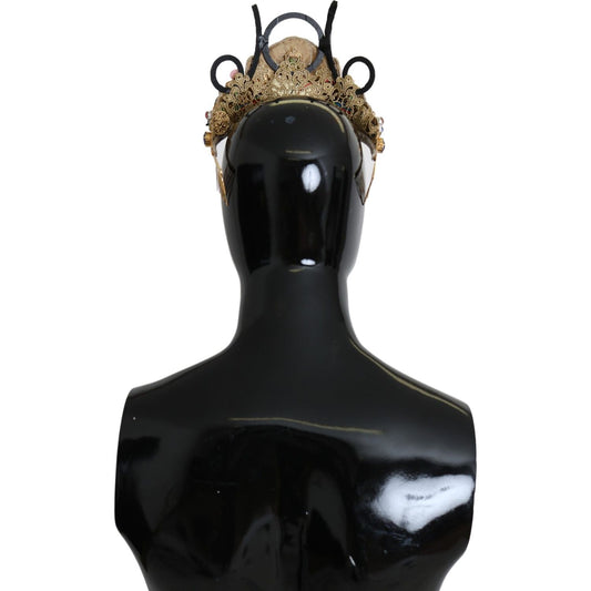 Dolce & Gabbana Gold Brass Floral Crystals LED Lights Crown Tiara Diadem