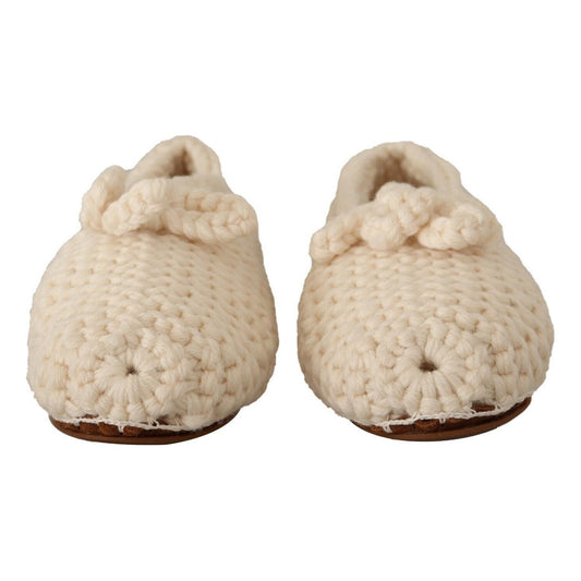 Dolce & Gabbana White Slip On Ballerina Flats Wool Knit Shoes